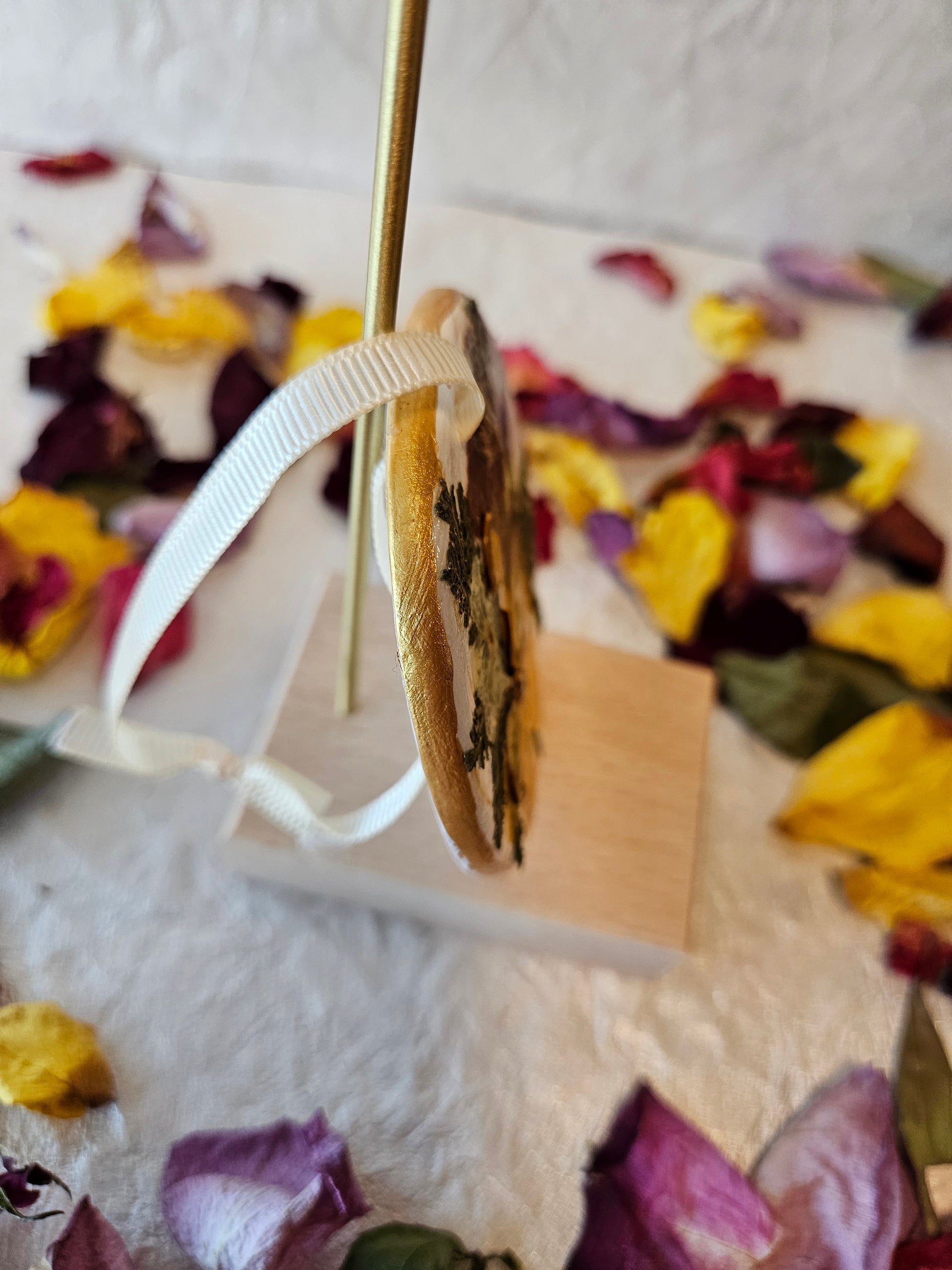 A dreamy cottagecore touch for your tree or wall. Real pressed flowers on smooth ceramic, handmade + sealed with care. Nature-lover décor, floral gift charm, forever-bloom vibes.